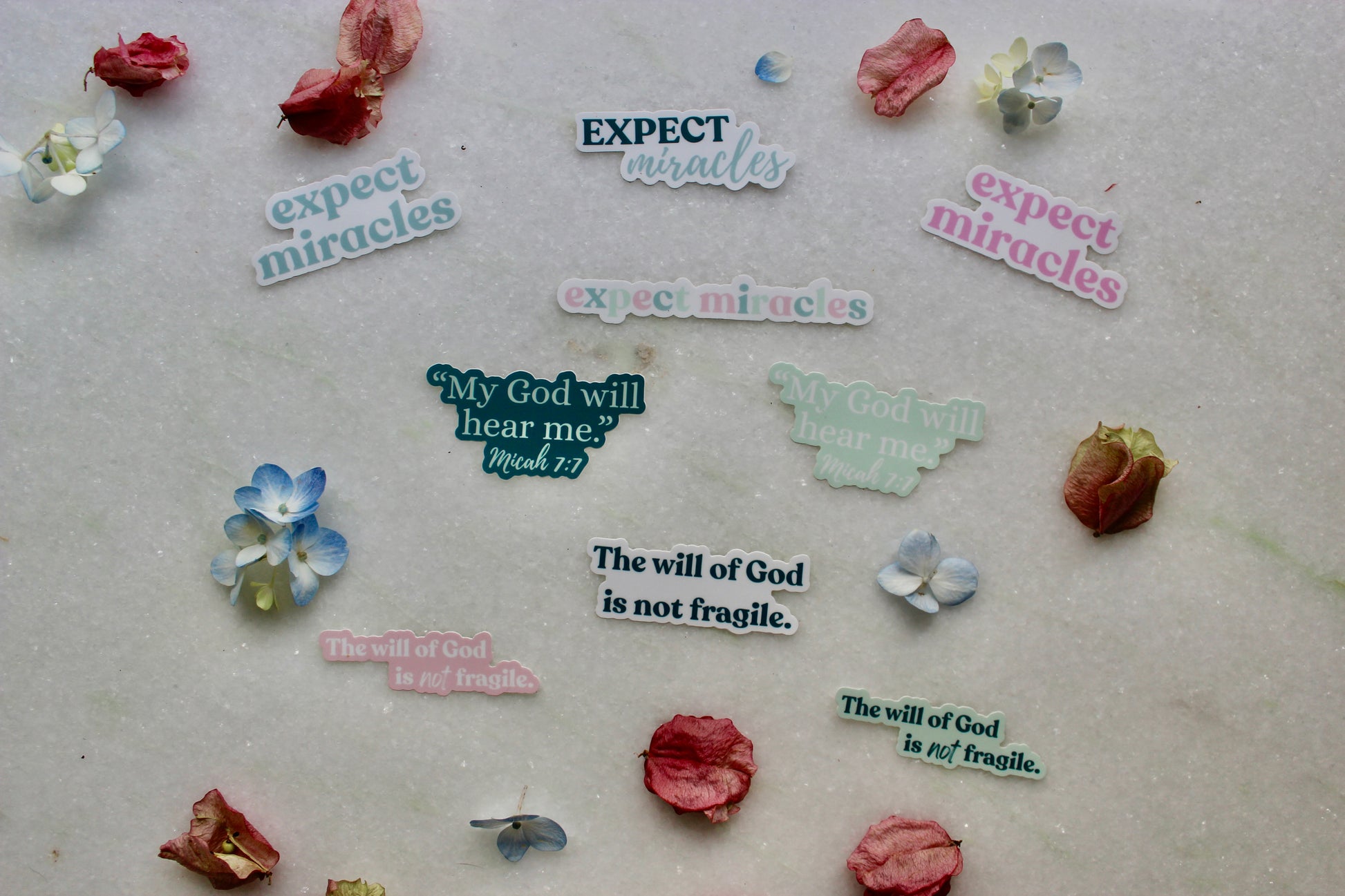 These designs were born from the words that helped us keep our gaze fixed on Him along the way. Whether you gift these stickers or keep them close, may they remind you that our God is not finished writing your story.